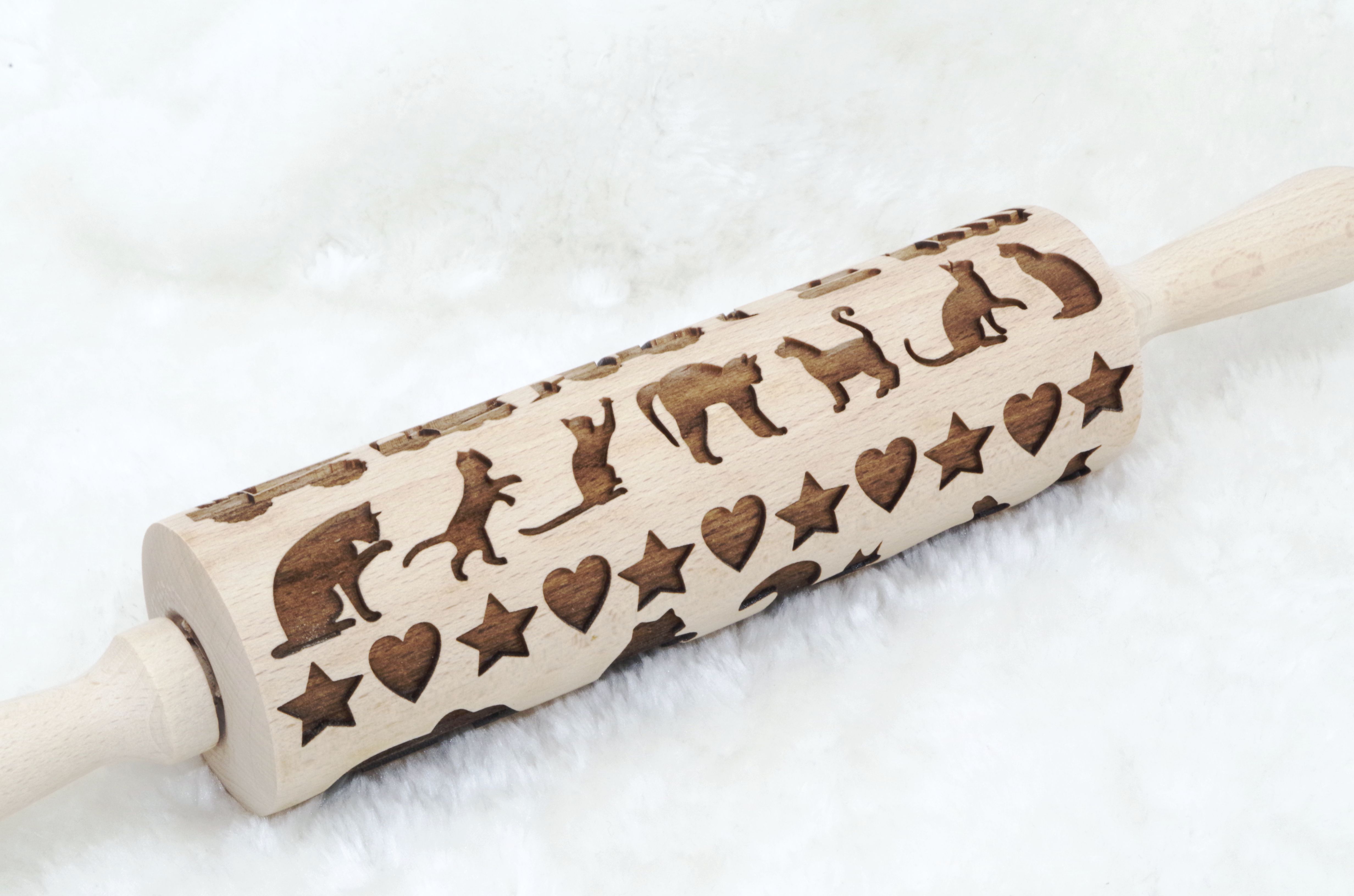 Wzory bardzo wyraźnie odbijają się na cieście, po upieczeniu wzór jest dalej widoczny. Wałek jest z drewna a wzory wykonane są metodą grawerowania laserowego.
