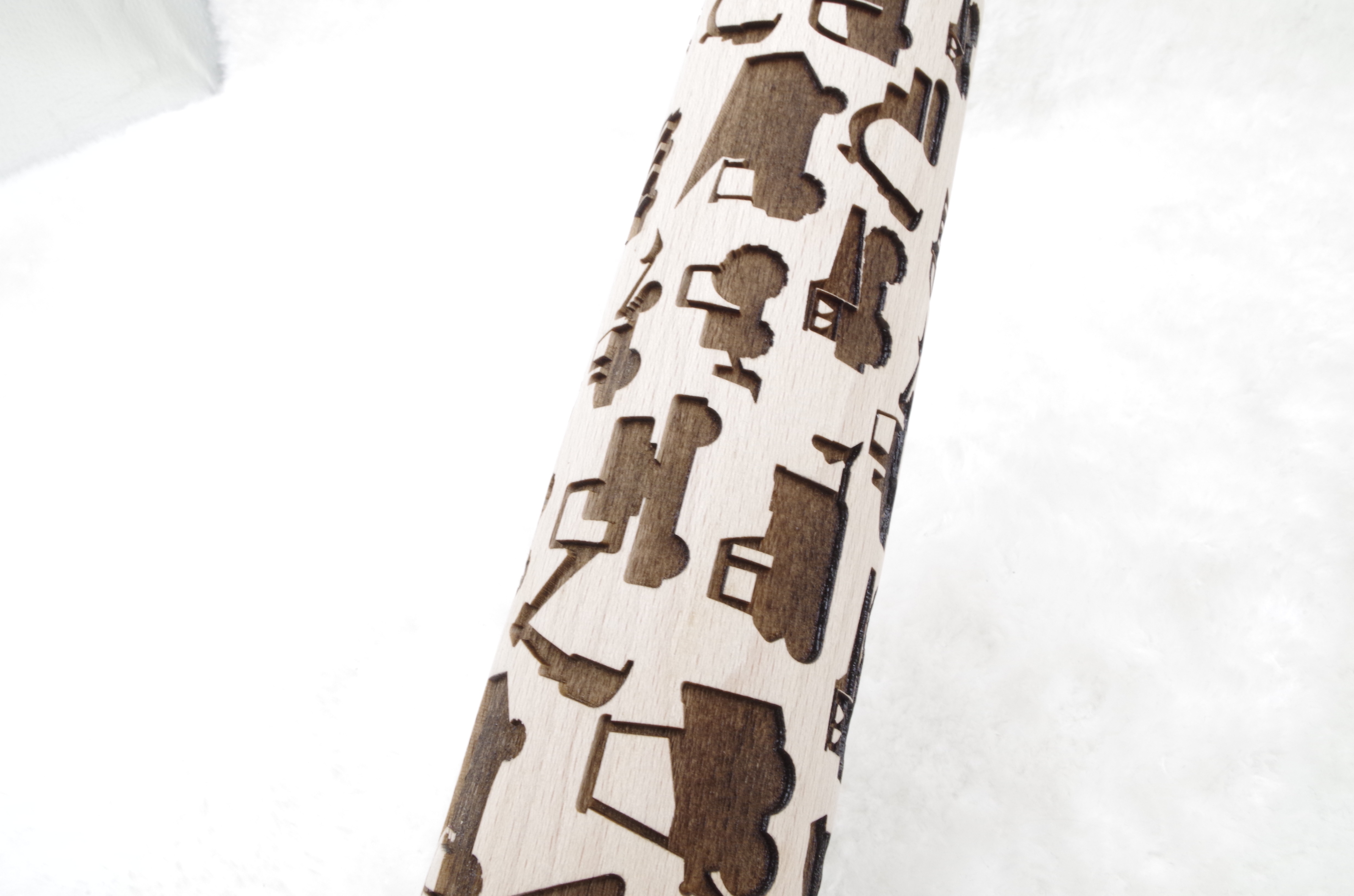 Wzory bardzo wyraźnie odbijają się na cieście, po upieczeniu wzór jest dalej widoczny. Wałek jest z drewna a wzory wykonane są metodą grawerowania laserowego.