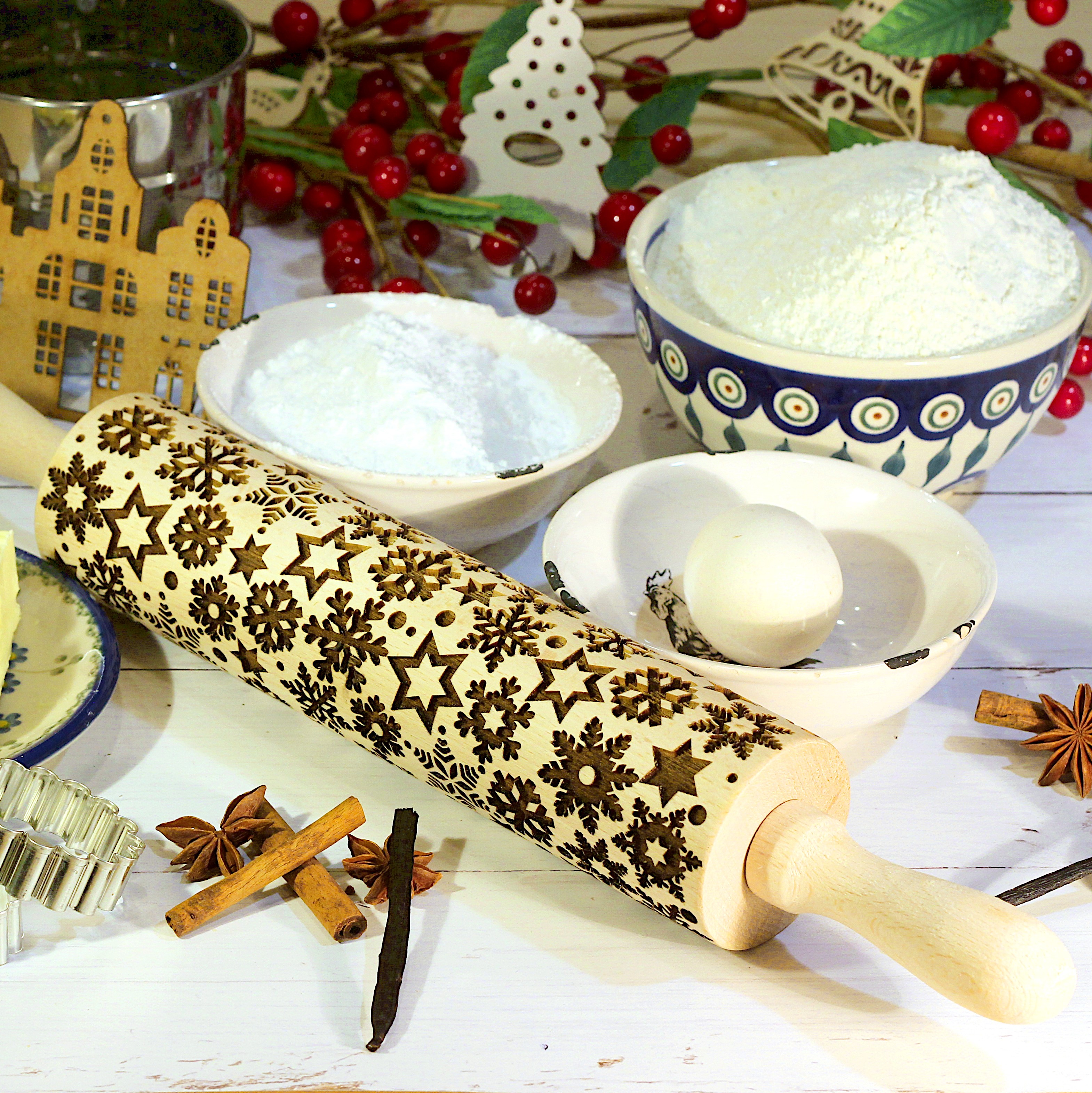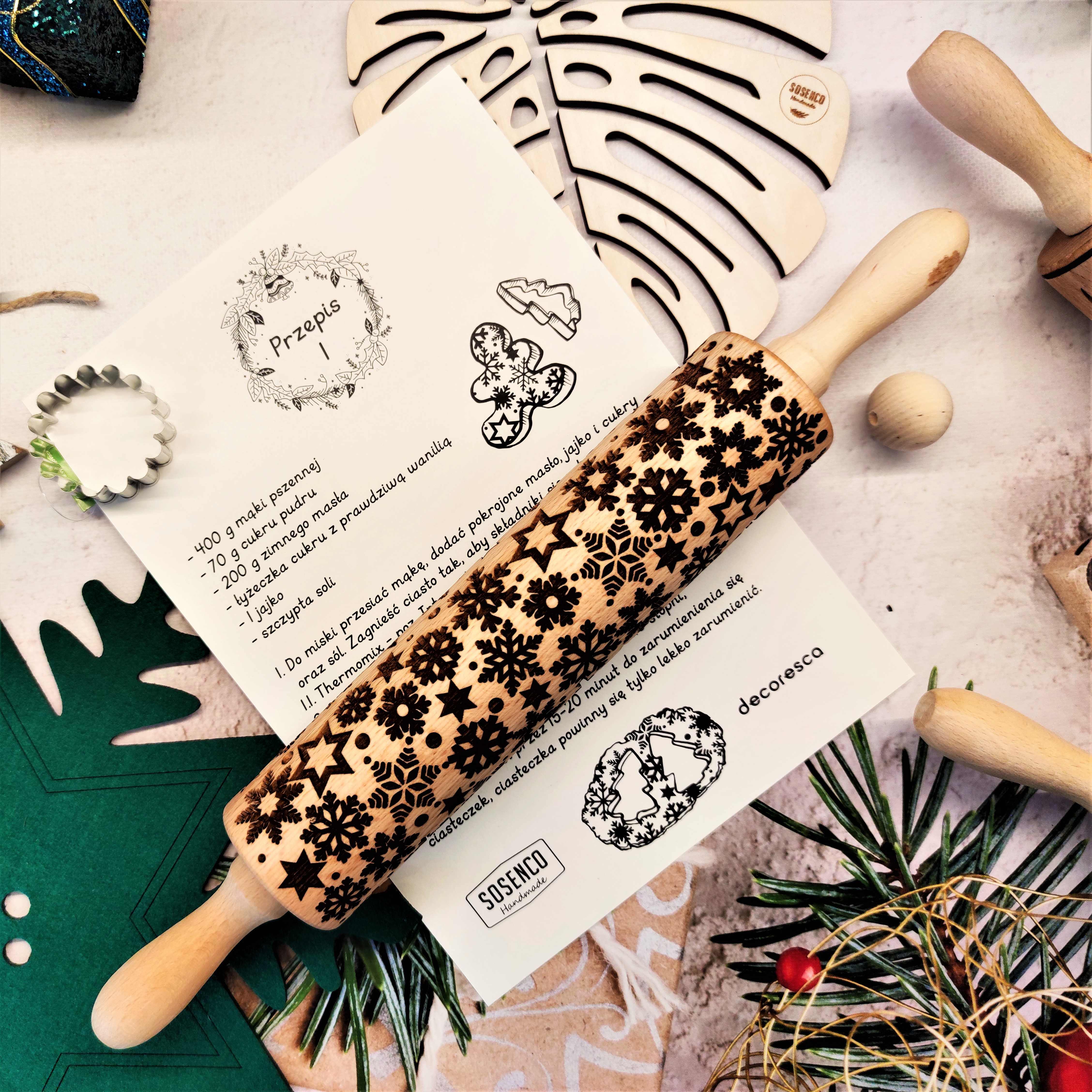 Przedstawiamy Państwu duży grawerowany wałek do ciasta wykonany w naszej pracowni w Polsce, z wysokiej jakości drewna bukowego.