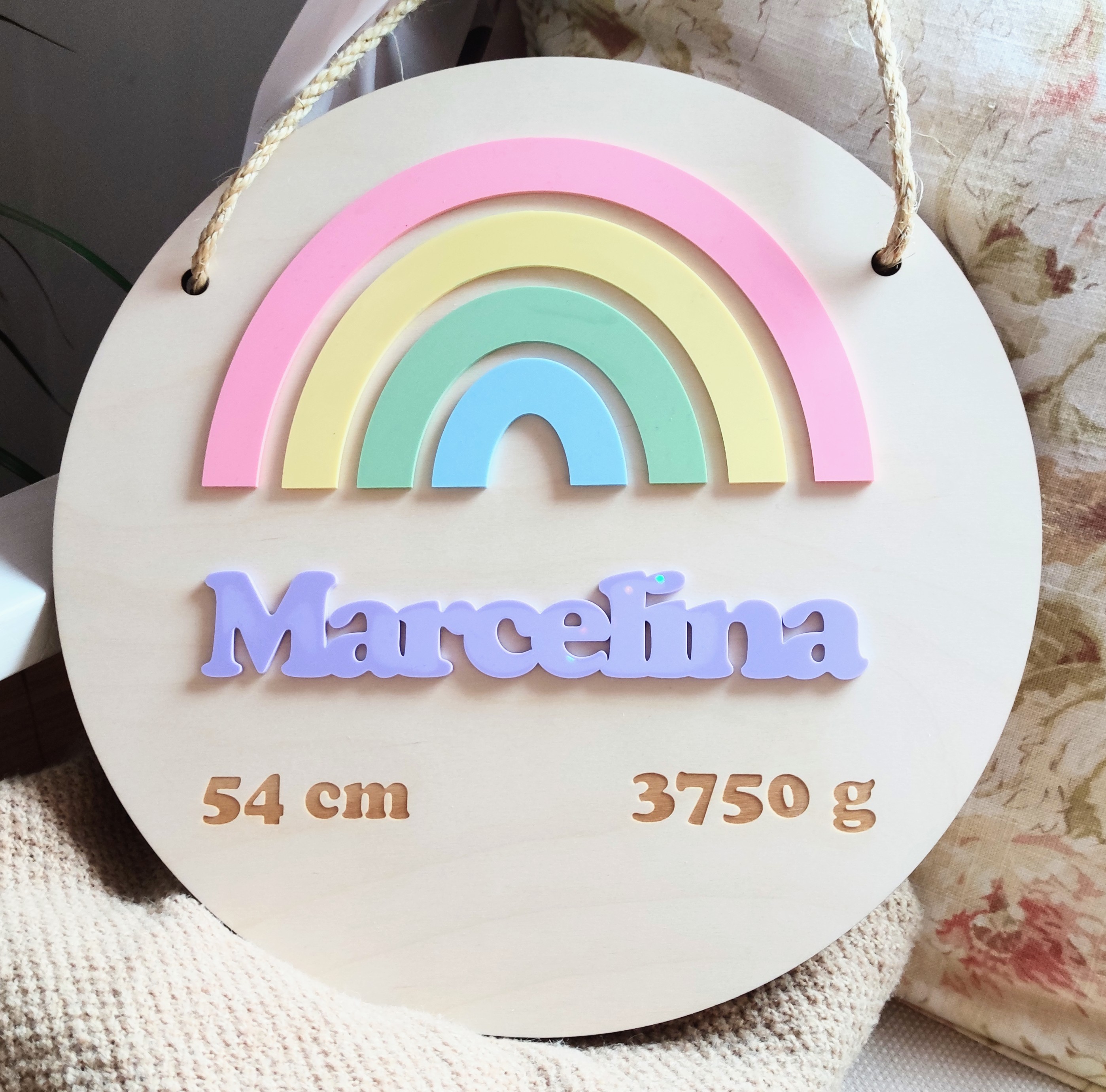 Cena dotyczy drewnianej metryczki z pastelową tęczą z plexi