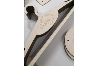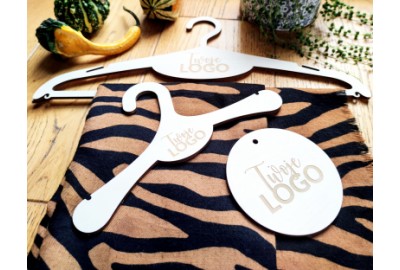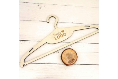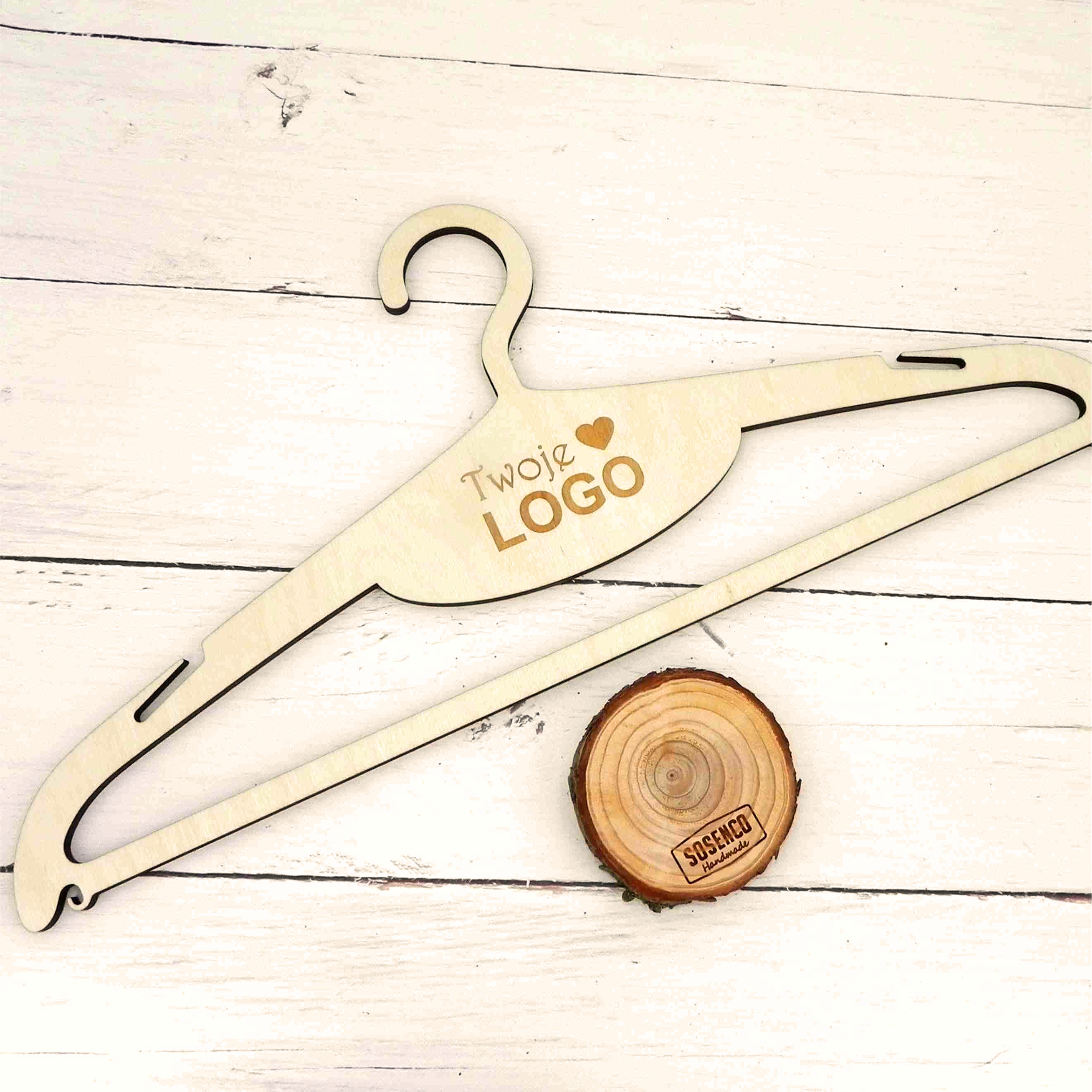 Piękny niepowtarzalny drewniany dodatek do prezentacji ubrań - specjalnie stworzony aby oznaczyć markę - aby wzmocnić wizerunek.