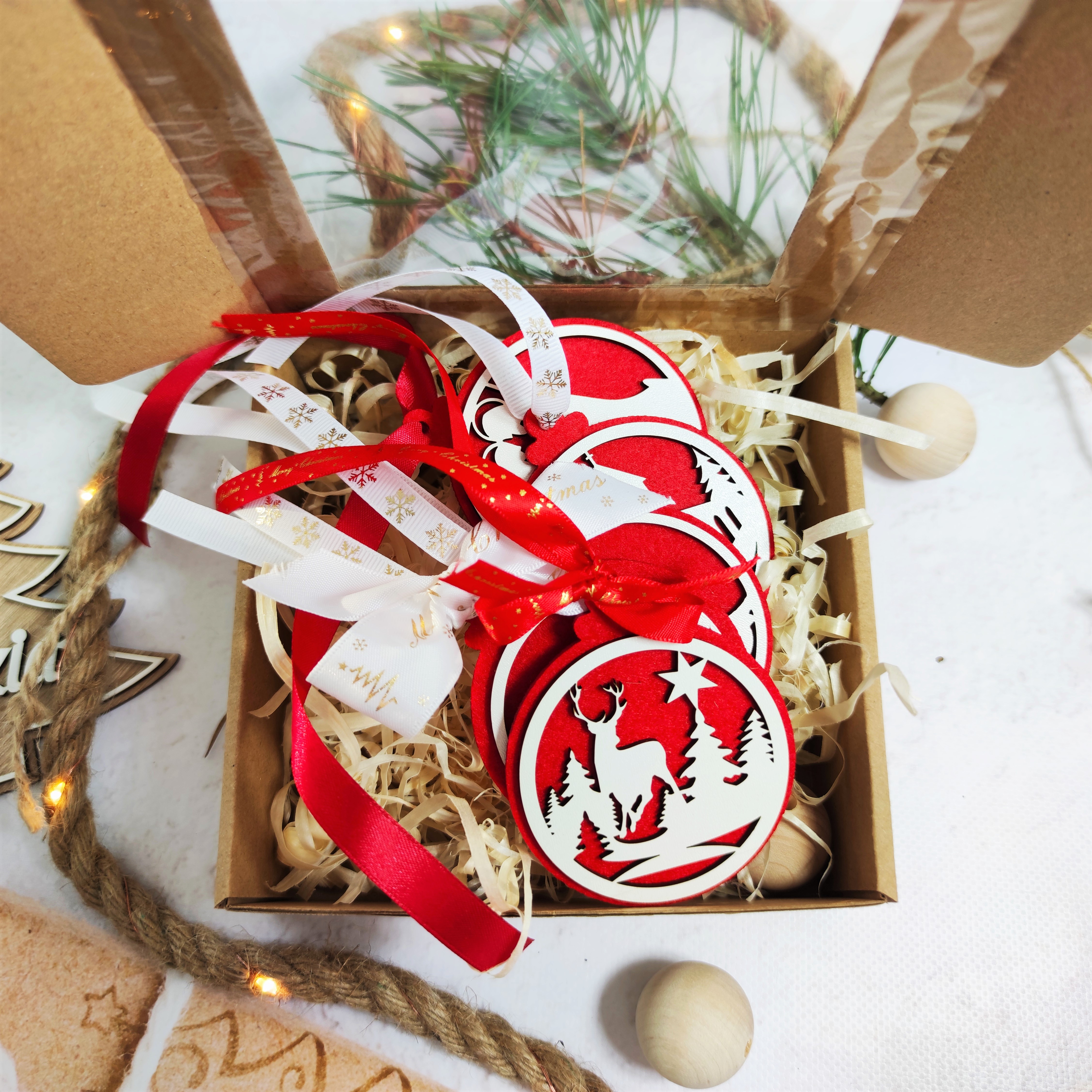 Bombki będą zapakowane w pudełeczko z okienkiem, dzięki czemu może się też stać pięknym, niepowtarzalnym prezentem.