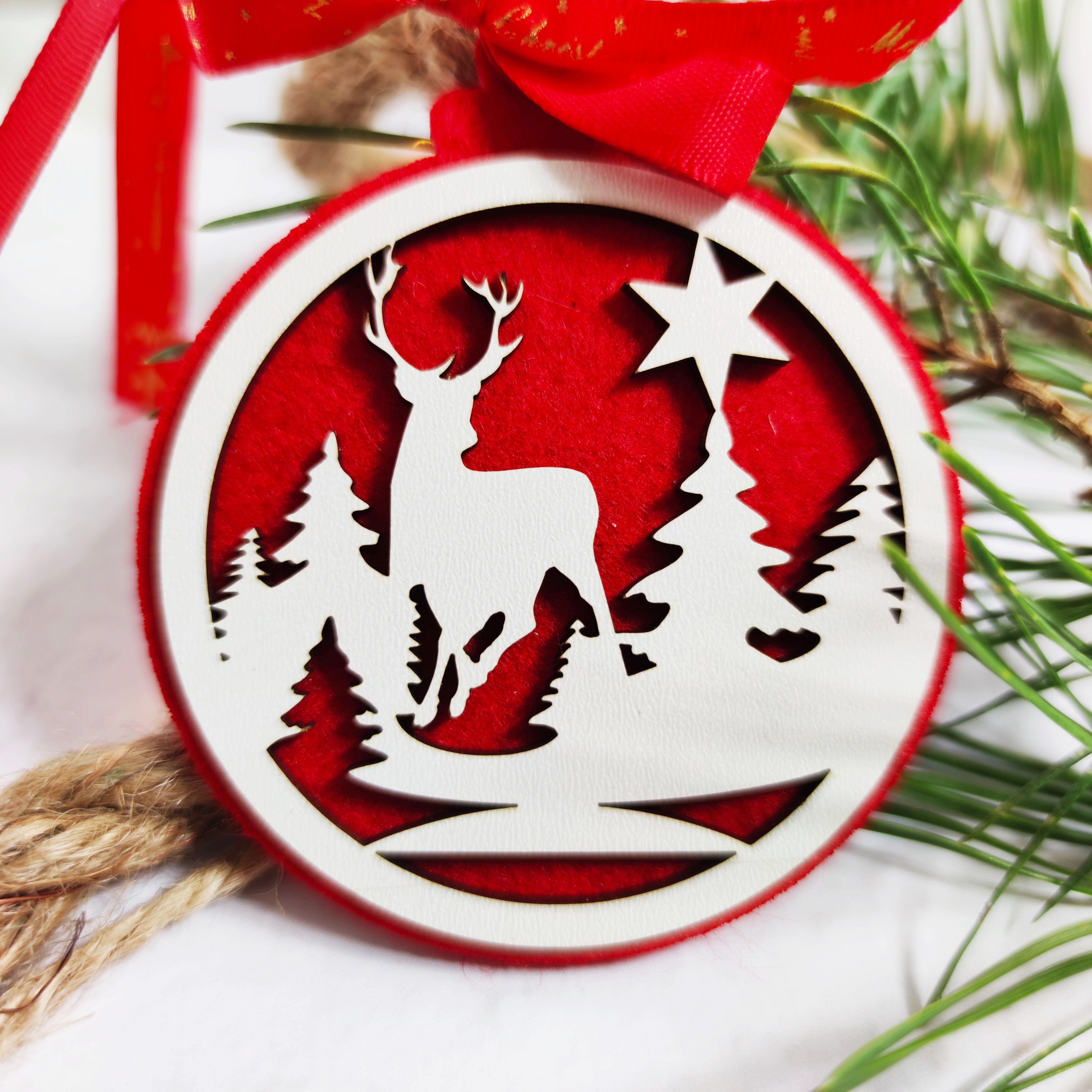 Zestaw wykonany z czerwonego filcu z białymi ozdobami