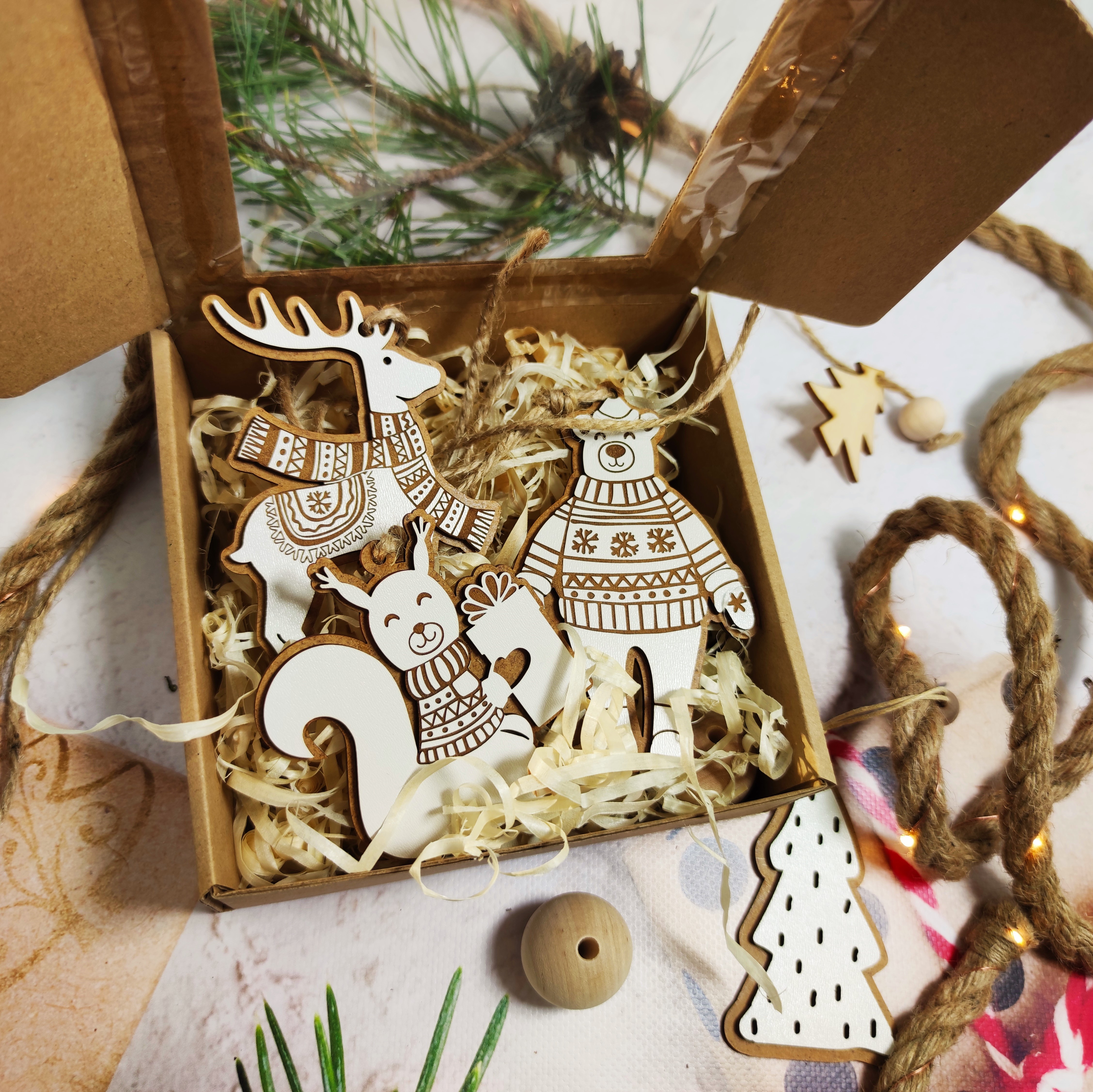 Piękny zestaw świąecznych ozdób choinkowych. Zaprojektowany i wykonany w naszej pracowni w Polsce. Dodatkowo w zestawie znajdują się zawieszki i koraliki a by dodać zawieszkom jeszcze większej elegancji. Dekoracje spakowane są w pudełeczko z okienkiem dzięki czemu mogą być wspaniałym prezentem świątecznym.